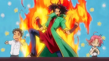 Meito Anizawa (兄沢 命斗 Anizawa Meito), also known as Anime Tenchō, is the manager of the Animate Ikebukuro shop (However, he appeared in the (old) Ōmiya shop and the comic market booth in the anime and appeared in the Akihabara shop in the PS2 Video Game), he was originally the mascot of Animate and Hero of Anime Tenchō. He and his staff consider Konata Izumi their most valued customer, known as "Legendary Girl A" (伝説の少女A ,Densetsu no Shōjo A), and go to great lengths to sell their merchandise to her, often to the point of using espionage and military-style strategies, and at one point, Meito himself uses "Geass" on Konata to persuade her to buy a DVD from him; however when she tries to pay it, she fell short only three yen.